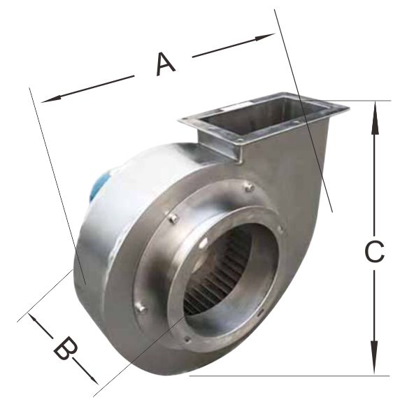 Stainless steel forward multi wing single inlet centrifugal fan.