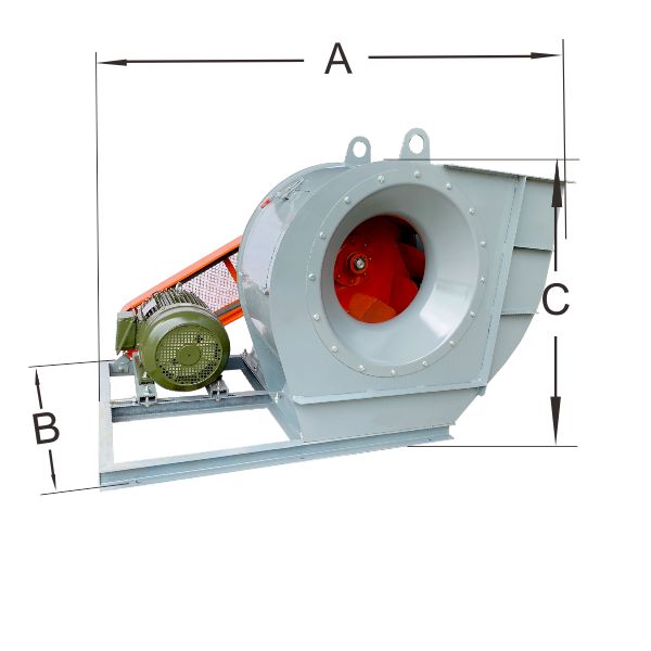 Medium pressure centrifugal fan with large air volume ,the impeller is consist of backward blades ,cone curved front plate and flat rear plate high efficiency ,low noise ,strong and durable